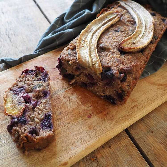 Meestal bak ik er één per week. Ik gebruik mijn eigen ontwikkelde basisrecept en probeer hier iedere keer een variatie op te maken. Vaak een carrotcake bananenbrood, maar de variant met blauwe besjes en pindakaas is ook favoriet.