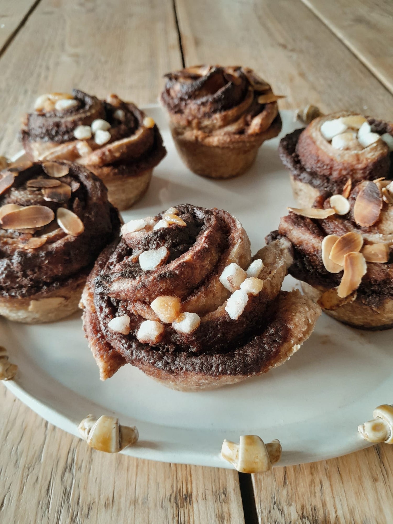 - Hier doe je eventueel amandelschaafsel, kaneelsuiker of parelkandij overheen, maar dit kun je ook later erop doen of weglaten.