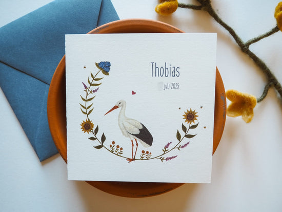 Omdat Thobias mijn kleine neefje is heeft hij op de achterkant van de kaart een hartje boven m'n logo gekregen, want het was voor mij extra speciaal om dit kaartje te mogen maken 🌿❤️
