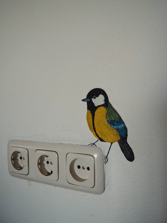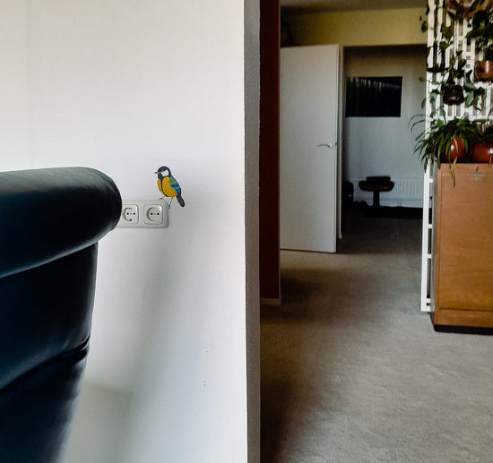 Een muurvogel voor in de gang, dat is een leuke binnenkomer! Zoals je ziet is deze muur van korrelige structuur, maar zelfs dan heeft het een fanastisch effect om zo'n vogeltje op je lichtknop te hebben zitten.